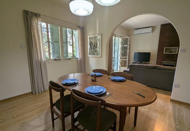 Welcome to your stylish urban retreat! Nestled in the heart of Nicosia's city center, this spacious one-bedroom apartment boasts a beautifully refurbished mid-century modern design. Located in one of the city's most picturesque neighborhoods, adjacent to the serene Pedieos Park, you'll find peace and tranquility in this quiet, cozy space. Whether you're here for business or leisure, enjoy the convenience of being steps away from local attractions while relaxing in this beautiful home.