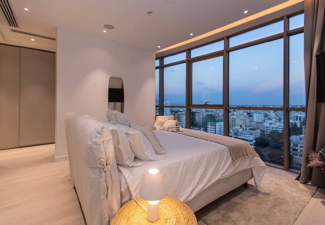 Welcome to our luxurious one-bedroom apartment located in the heart of Nicosia's city centre. Our stunning high-rise residence offers panoramic views of the cityscape, modern design, and smart amenities for a memorable stay.