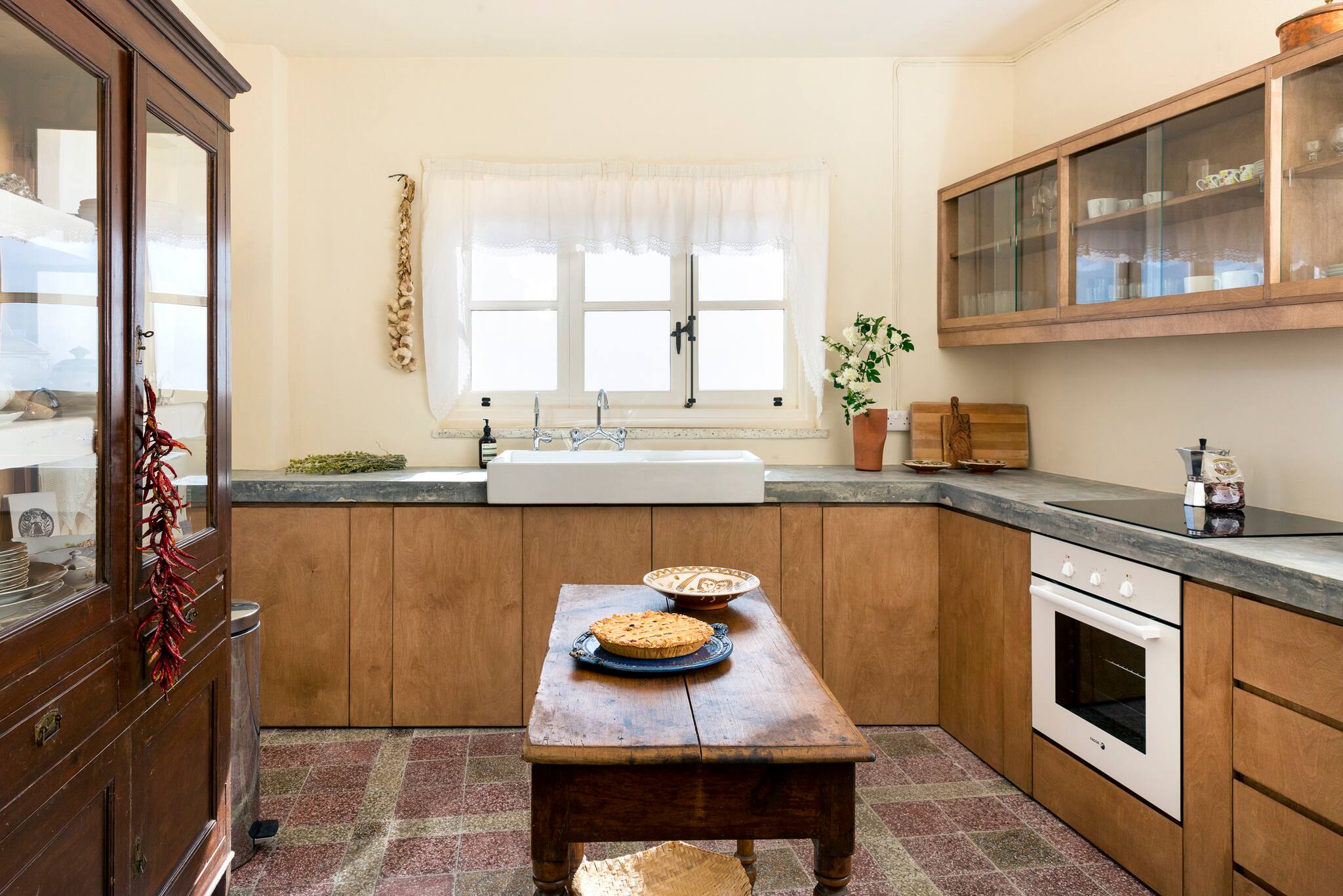 A traditional architecture that retains the house features, traditional mosaic and stone floorings, high wooden ceilings, large openings providing ample light and stunning sea and mountain views.