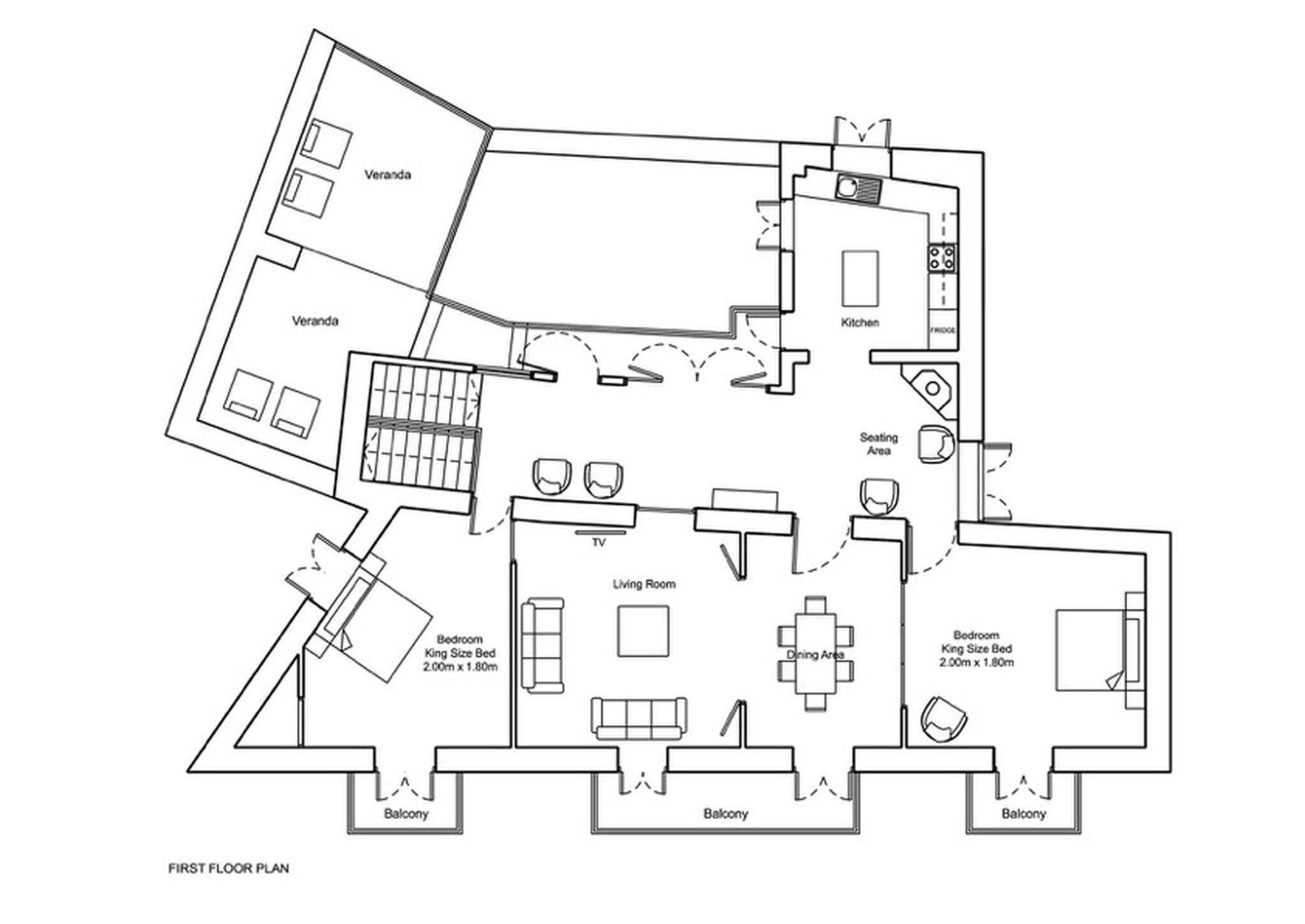 The first floor consists of two double bedrooms with balconies, a patio, a kitchen, a dining area and a living room with a balcony. Also an idyllic upper terrace offers breathtaking horizon views of the distant mountains and sea.