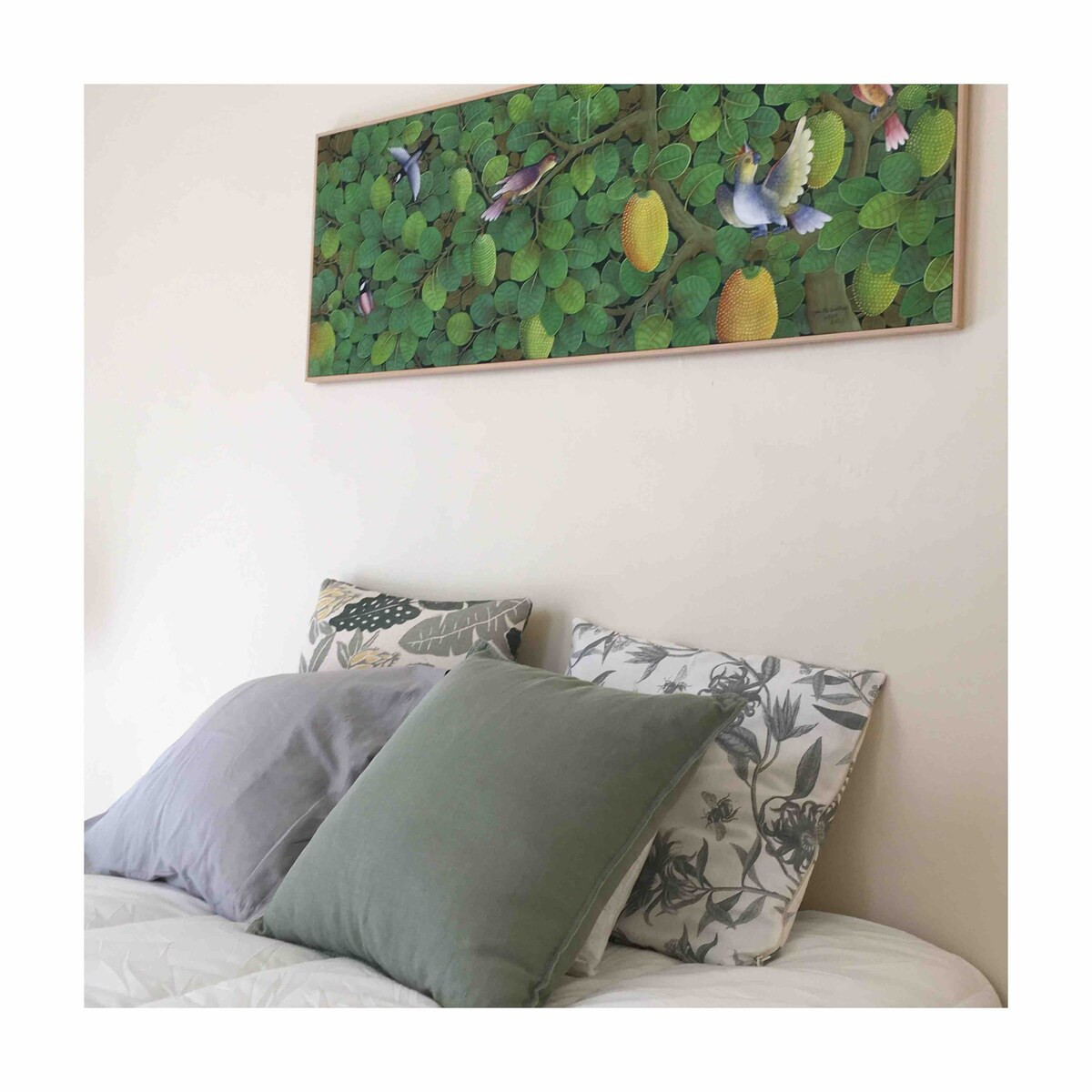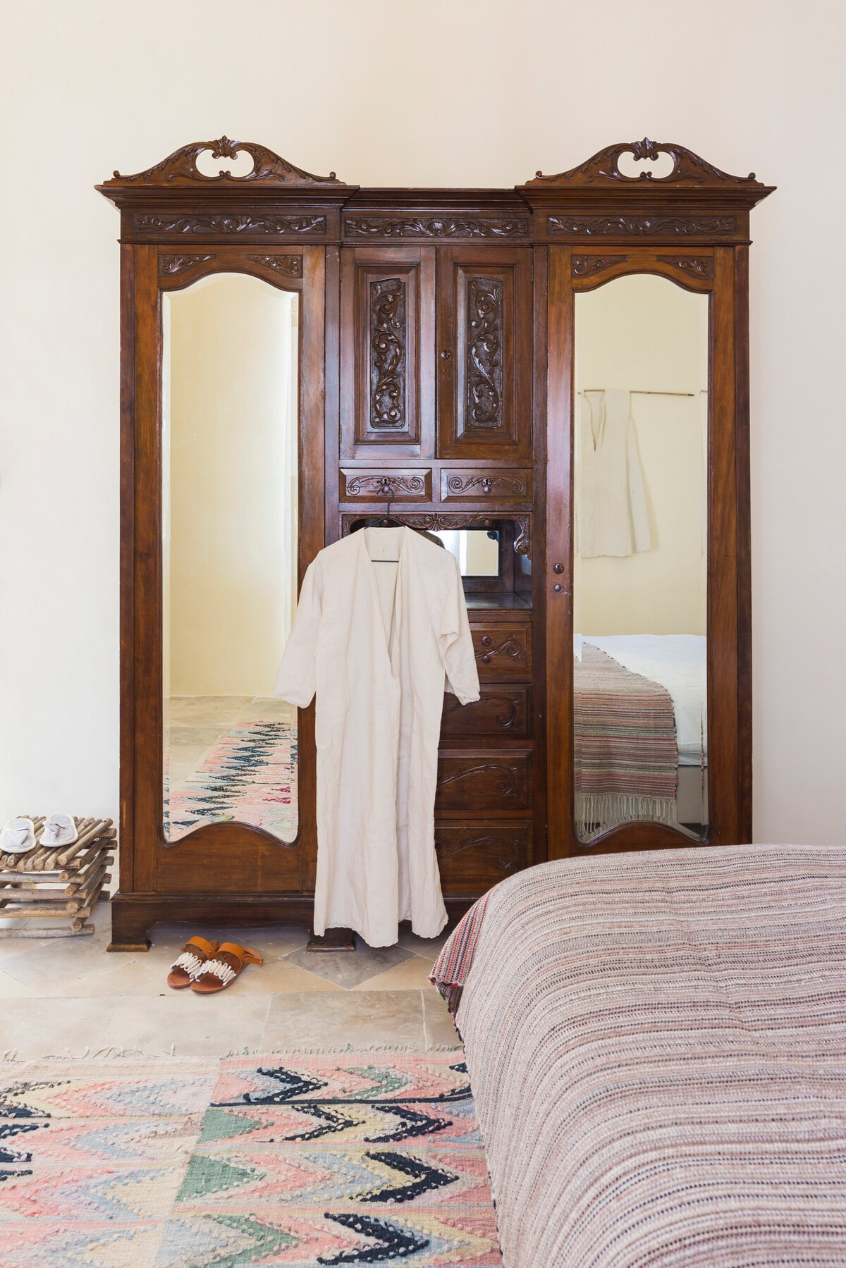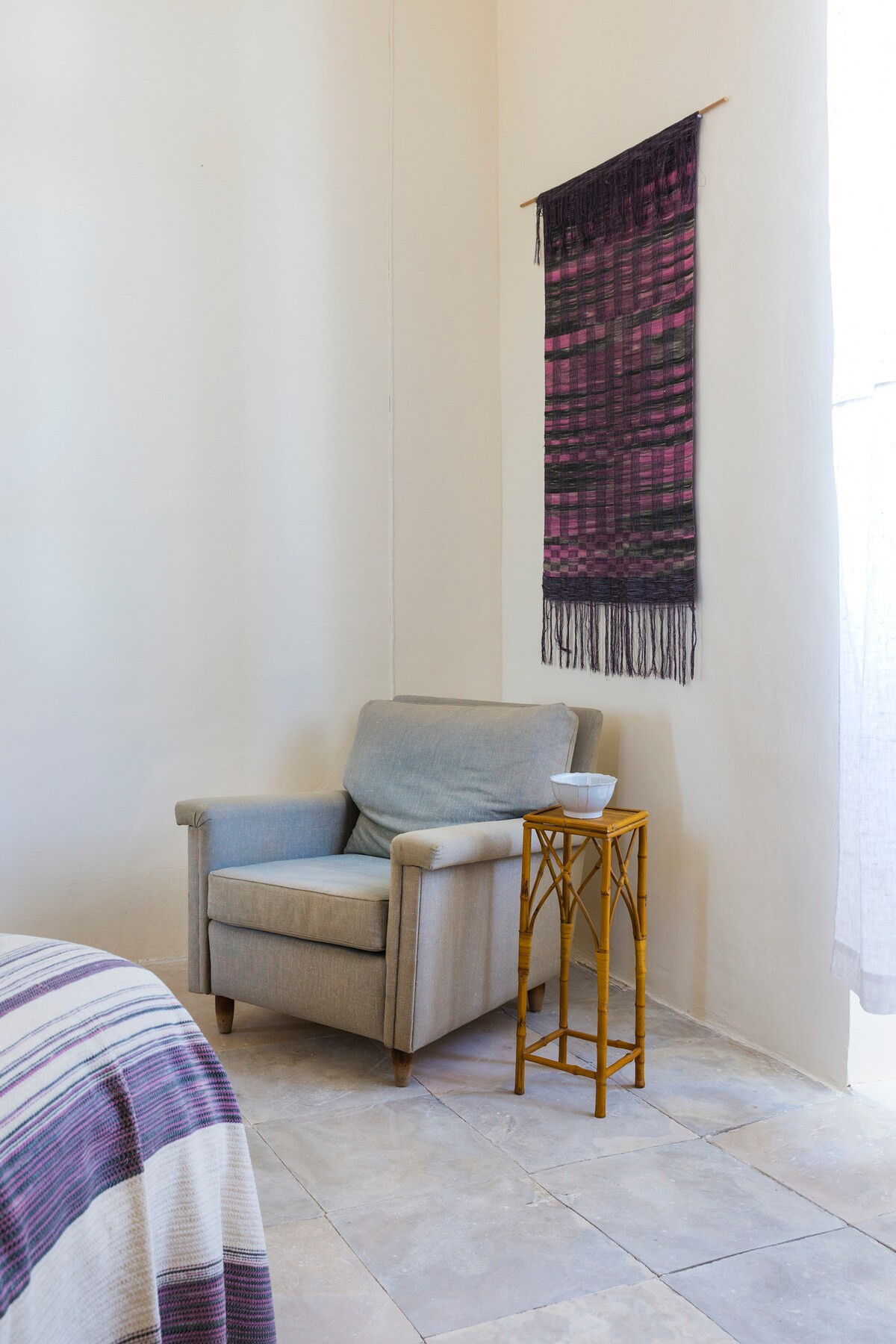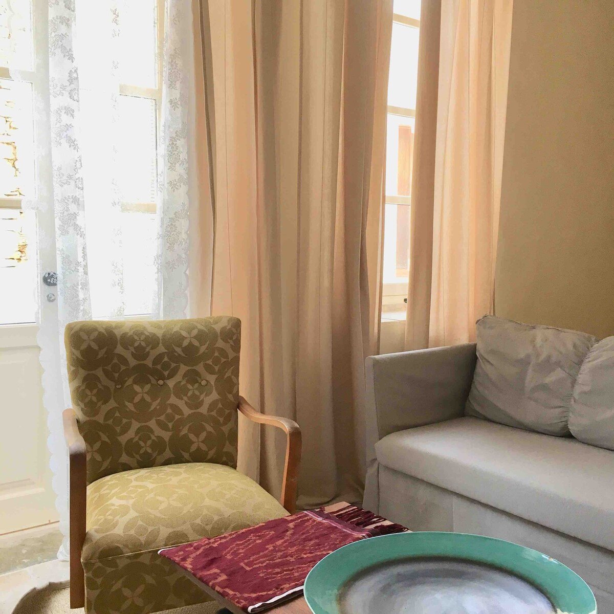 The house is embraced by art, family heirlooms, travel memorabilia, books, world textiles, and objects collected from auctions around the world. Every room reflects a sense of love, grace, and lived history, giving the home a special and deeply comforting energy.