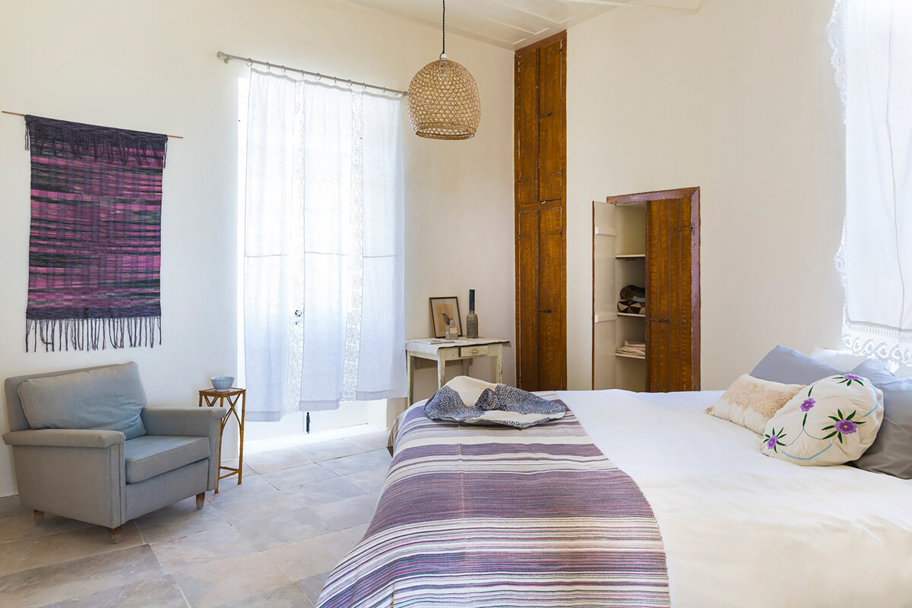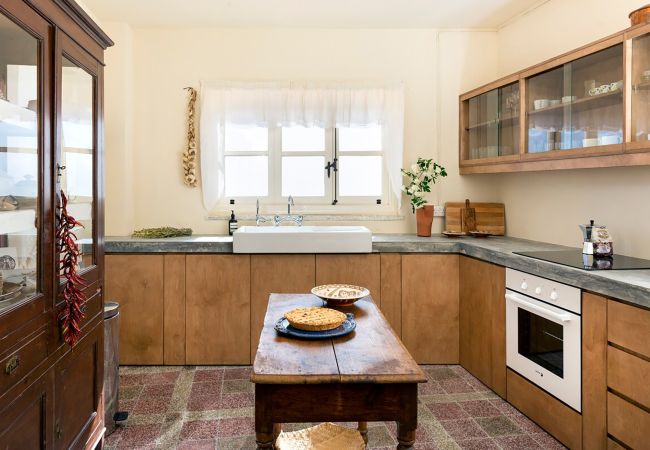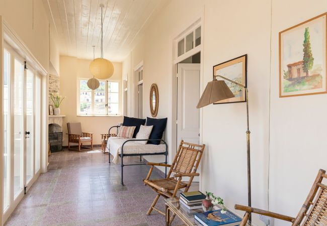 The architecture preserves the original features of the home, including traditional mosaic and stone floors, high wooden ceilings, and large openings that fill the spaces with natural light. From many points of the house, there are stunning views of the sea and surrounding mountains.