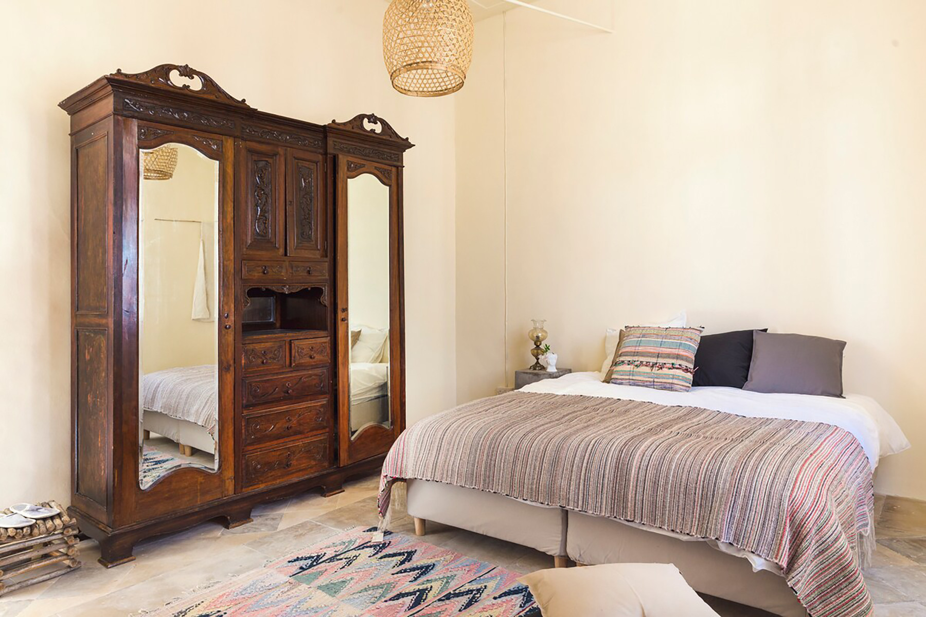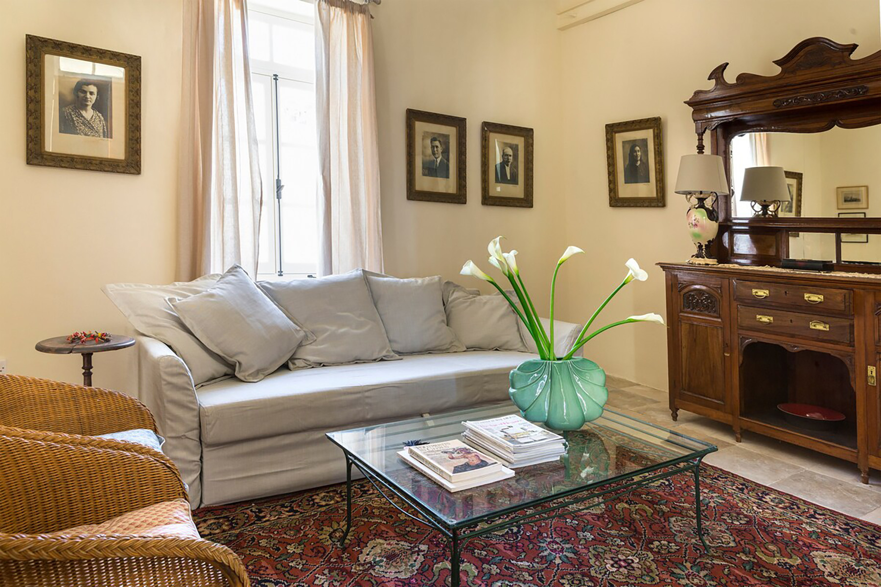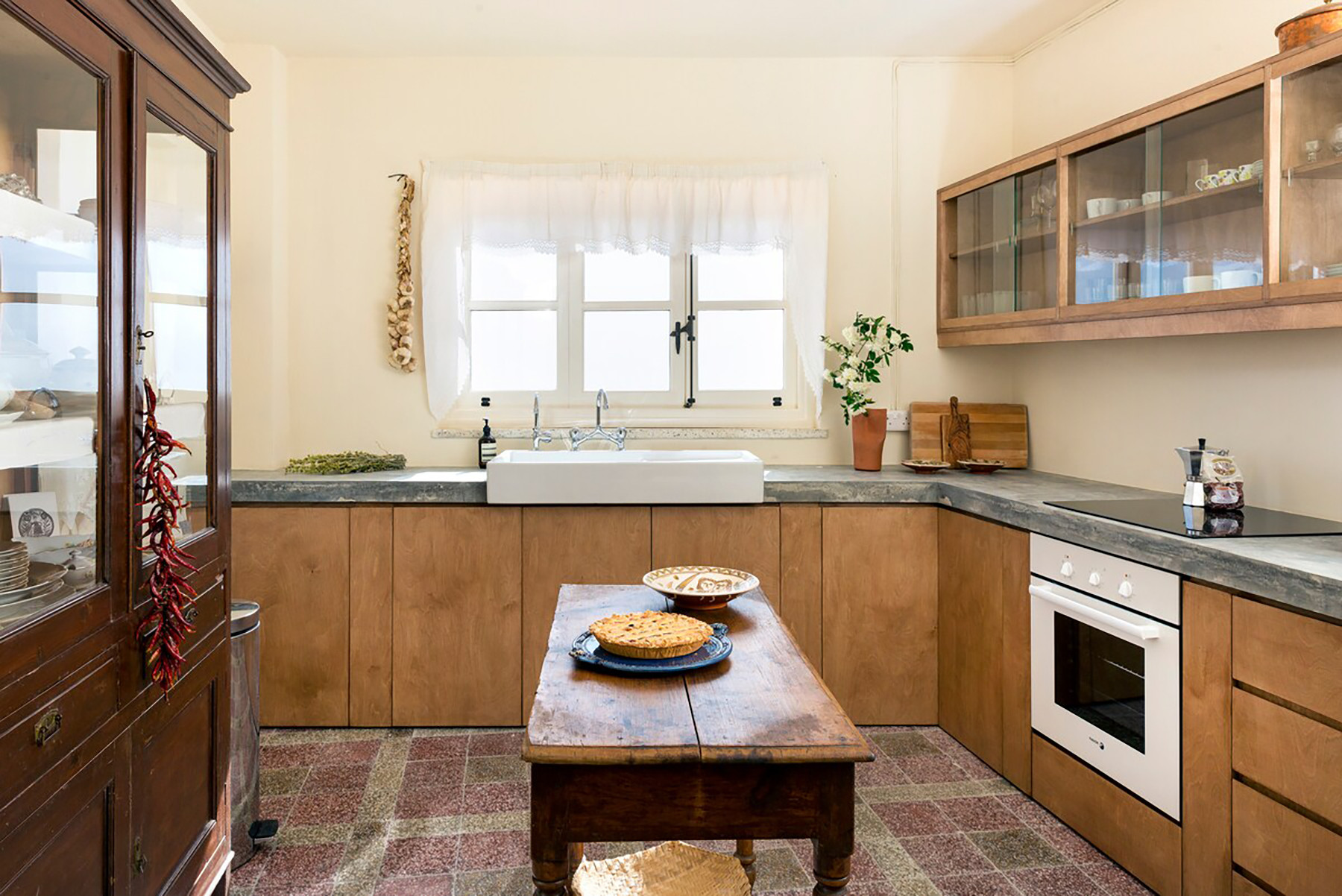 The two storey house is constructed with local limestone and soil, naturally offering coolness in summer and warmth in winter. It has remained in our family for many generations. The first renovation dates back to 1929, carried out by my grandfather, and the house has recently been masterfully renovated with great care and respect for its character.