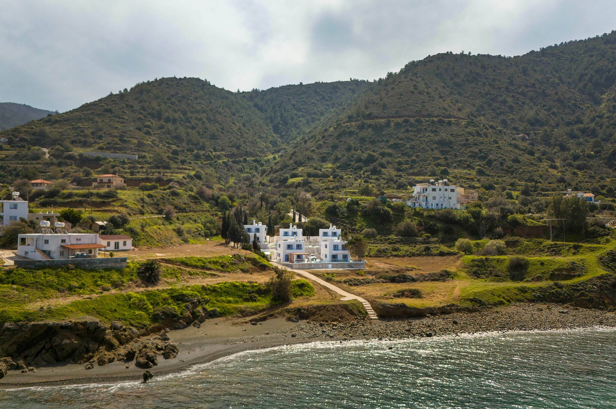 Guests have full access to their private villa, including two bedrooms, a fully equipped kitchen, living and dining areas, a bathroom, guest WC, and a private terrace with sea views. All guests share access to the infinity pool, sun loungers, and direct beachfront entry. For full estate bookings, all five villas and shared spaces are exclusively yours for the duration of your stay.