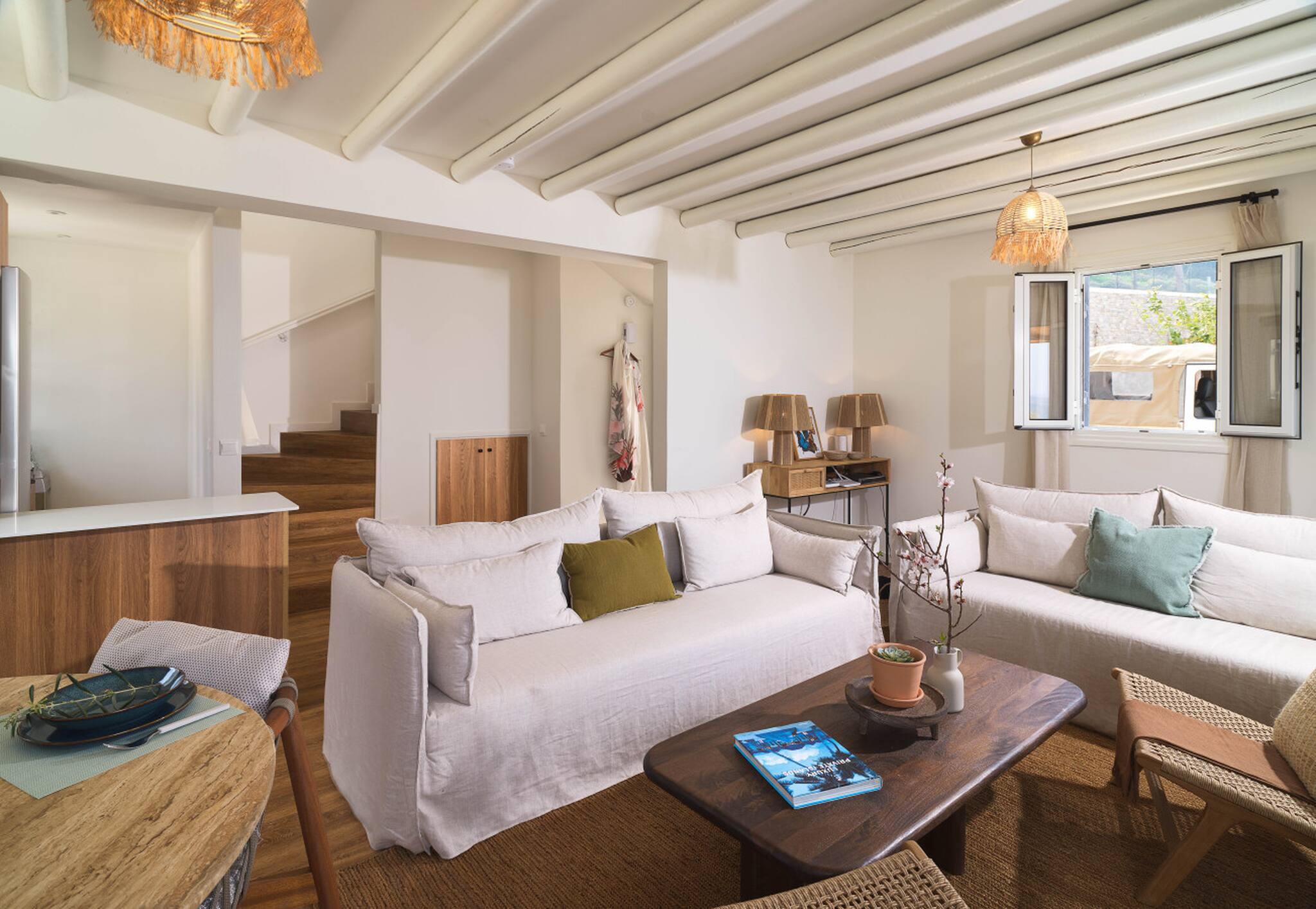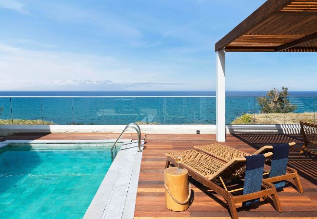 Guests have full access to their private villa, including two bedrooms, a fully equipped kitchen, living and dining areas, a bathroom, guest WC, and a private terrace with sea views. All guests share access to the infinity pool, sun loungers, and direct beachfront entry. For full estate bookings, all five villas and shared spaces are exclusively yours for the duration of your stay.