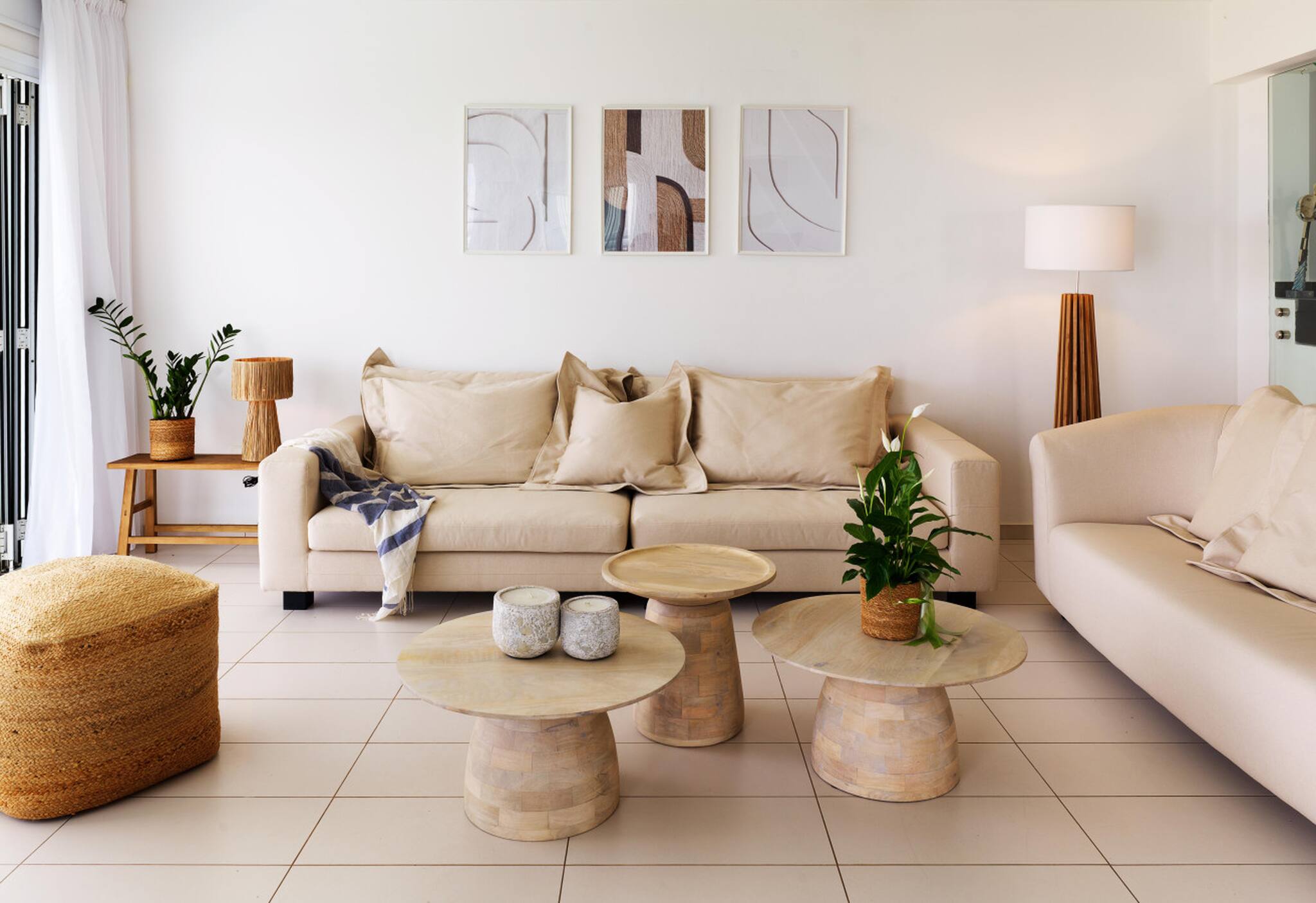 Inside Sirena Solis, understated elegance meets thoughtful design. The interiors embrace simplicity and light, with open-plan living and dining areas that feel both spacious and serene. Sunlight pours through large windows, casting a gentle glow over natural textures and soft, neutral tones. Every element invites relaxation.