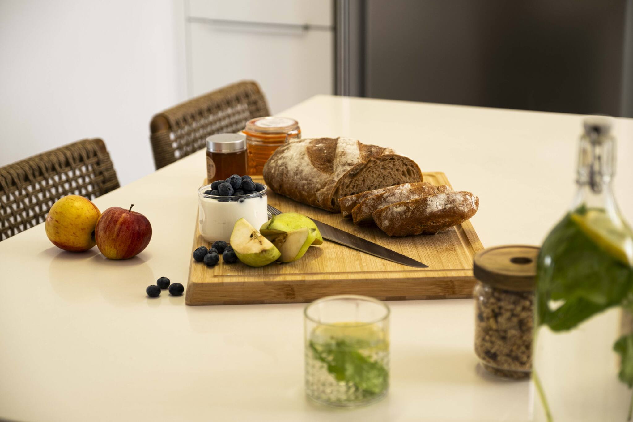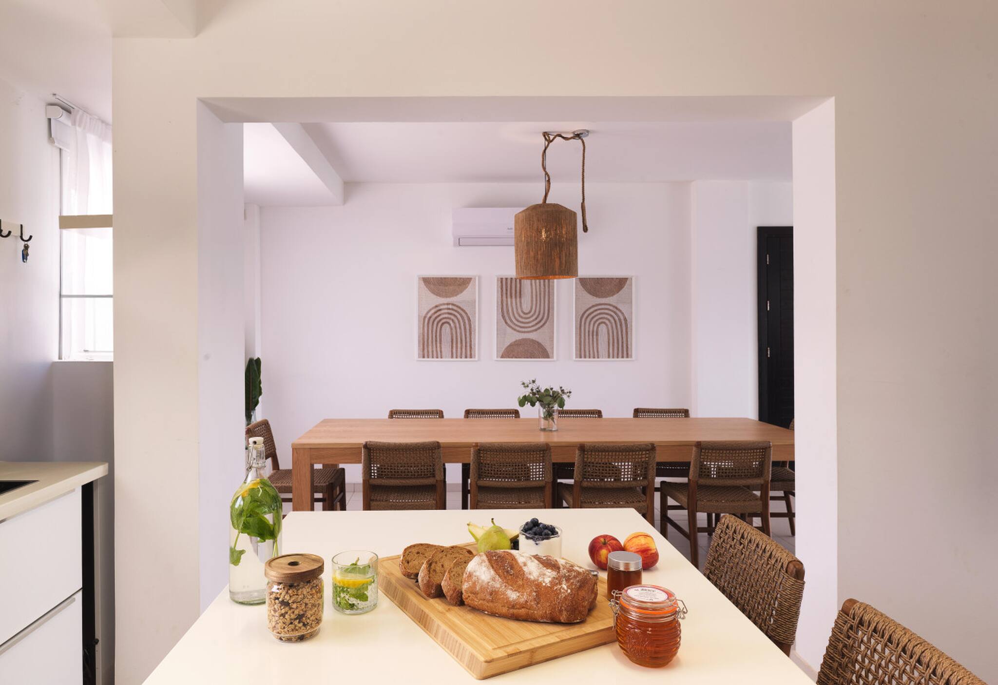 Our five bedrooms, offer comfortable and stylish accommodations for up to eight guests. Two of the bedrooms also feature a shared private balcony with panoramic views. The sleek and fully equipped kitchen is perfect for cooking up delicious meals, and the open-plan living and dining area provides ample space for gathering and entertaining.